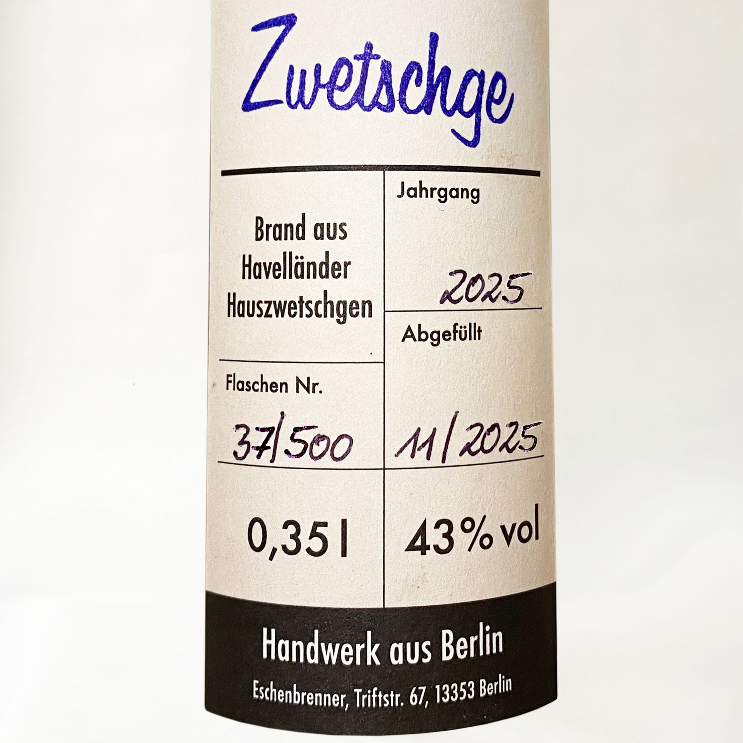 Brandenburger Obst: Dieser Brand aus Havelländer Hauszwetschgen hat eine unglaubliche Dichte und Fülle am Gaumen und im Abgang einen frischen saftigen Schmelz, der die 43 % Alkohol sofort vergessen läßt.
